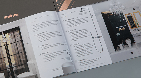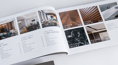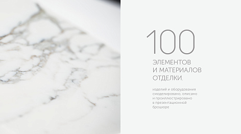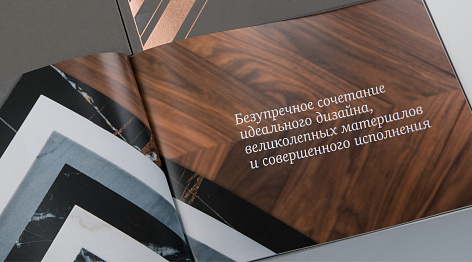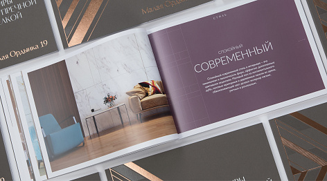 Задачей буклета «Квартиры с безупречной отделкой» было передать качество, продуманность и красоту продукта: показать каждый из трех стилей, дать удобную возможность сравнить их между собой и предоставить исчерпывающую информацию об используемых материалах. Для этого было необходимо переработать и превратить в понятный, наглядный материал огромное количество контента: более 100 визуализаций интерьеров, описание каждого помещения в каждом варианте отделки и технические спецификации.