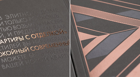 Полиграфическое исполнение подчеркивает качество и продуманность продукта. Обложка напечатана шелкографией и двумя видами тиснений, что в сочетании с дизайнерской бумагой создает интересный визуальный и тактильный эффект. Этот буклет хочется брать в руки и листать.
