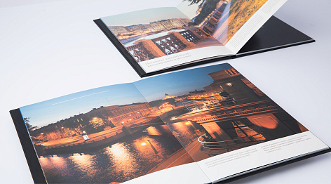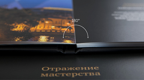 Полиграфической инновацией проекта стало специальное бесшовное скрепление блока, которое позволяет достичь раскрытия брошюры на 180 градусов без видимых изгибов. Благодаря этому эффекту вы буквально погружаетесь в специально отснятые панорамные виды из квартир дома.