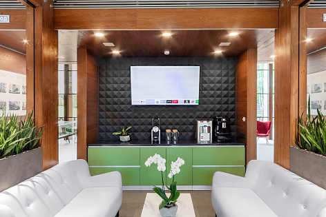 В офисе продаж предусмотрена VR-комната, где с помощью 3D-очков можно просматривать существующие квартиры в реальном размере.