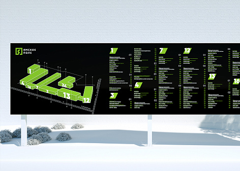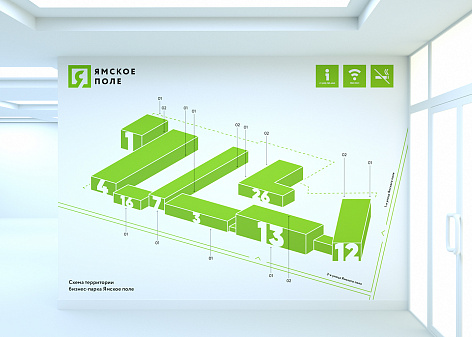 В результате создана целостная навигационная система, которая помогает людям уверенно ориентироваться в пространстве и чувствовать себя спокойно. Единый стиль создает концептуальную и необычную атмосферу территории, подчеркивая суть бренда «Ямского поля — «бизнес-парк для роста».