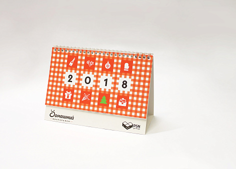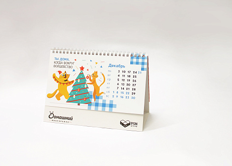 Поэтому в качестве подарка на Новый год мы решили дарить клиентам пряничный домик и перекидной настольный календарь.