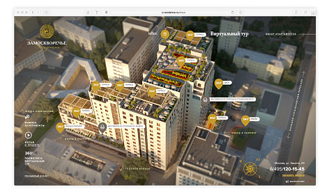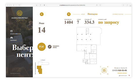 Сайт проекта, равно как и его мобильная версия, – это много эмоций и настроения проекта, удобный выбор апартаментов, детальное погружение в проект благодаря виртуальному туру, панорамам, галерее, а также очень удобной навигации.