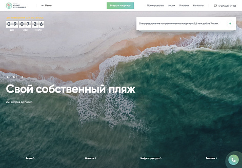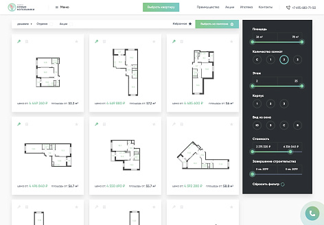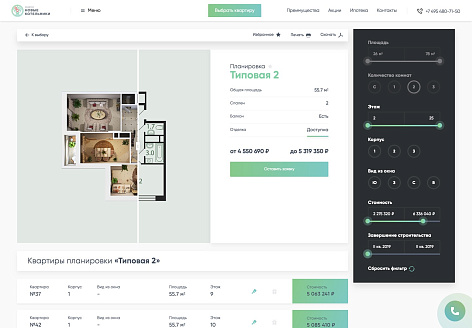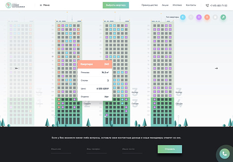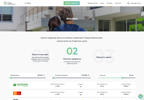 Разработка промосайта для жилого комплекса «Новые Котельники». Новый сайт стал частью комплексного перезапуска продаж, в результате которого конверсия из звонка в бронирование квартиры за первый месяц работы составила 17,7%, а стоимость звонка снизилась в 6 раз.