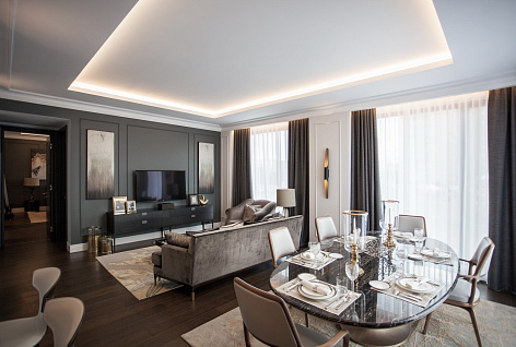 На площади более 700 кв. м удалось совместить несколько различных зон - приветственную зону ресепшен, поражающую посетителей видеоэкраном размером более 30 кв. м и огромным макетом, лаундж-зону для неформальных бесед, 5 переговорных, детскую игровую комнату, а также роскошный шоу-рум.