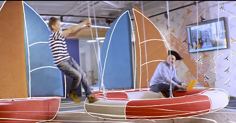 Игра мальчика увлекает, и мы вместе с ним совершаем необычное морское путешествие по офису. Интерьер получил премию Best Office Awards 2017.