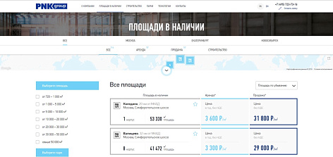 Для сайта девелопера индустриальной недвижимости возможность самостоятельного подбора площади с ориентировочной ценой – уникальная опция. Мы сделали подбор площадки интуитивно понятным, ориентируясь на опыт интернет-магазинов.