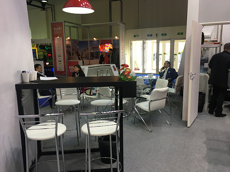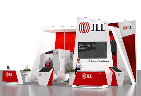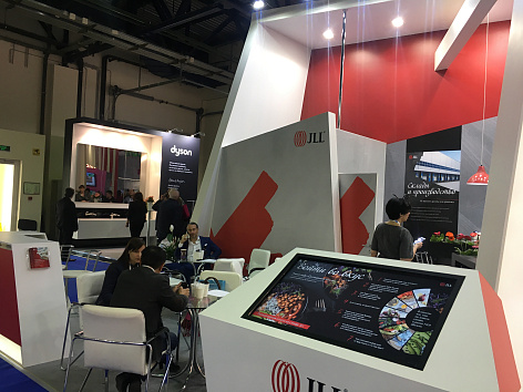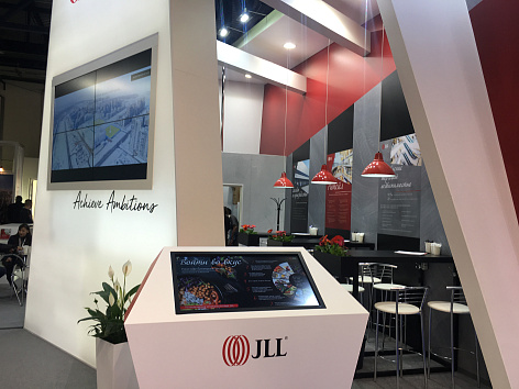 Дизайн сденда был разработан командой маркетингового отдела компании JLL. Площадь стенда составляла 54 кв.м, стенд состоит из многоуровневых брендированных фигур, включает в себя 7 переговорных зон, два диджитал-экрана, плазма и подсобное помещение.
