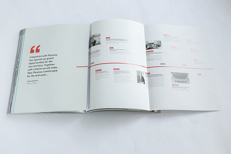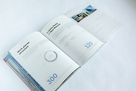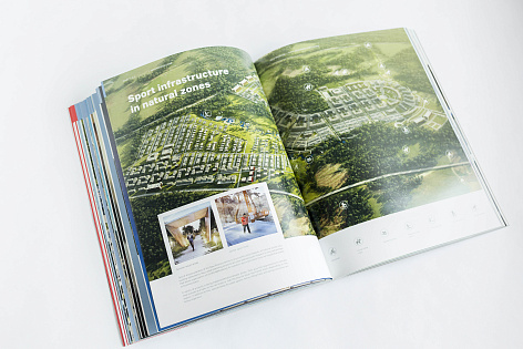 Vide Infra разработала и предложила структуру, на основе сотен проанализированных презентаций чиновников о проекте. Обеспечила разработку всех материалов для буклета - от иллюстраций и схем, до фотографий и 3D-изображений. Помимо этого, были придуманы все технологические решения при производстве и печати, такие как мини-блок с частными мнениями, панорамные клапана, вставки на кальке с цитатами чиновников по курируемым ими направлениям.