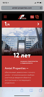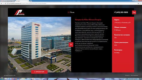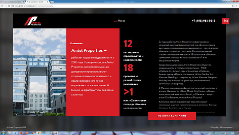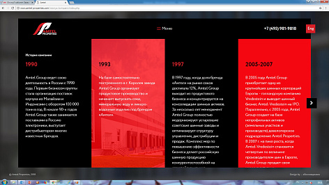 Редизайн и полное обновление структуры корпоративного сайта компании. Задача - смещение акцентов с проектов компании на представление развитого стабильного бизнеса. Разработка корпоративной миссии и видения компании. В результате создан простой, запоминающийся мобильный двуязычный (русский и английский) сайт с необходимым объемом контента. Для удобства пользователей обеспечено ранжирование проектов по типу недвижимости и по географии. Также есть версия сайта для мобильный устройств.