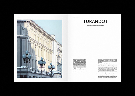 Имиджевый буклет Турандот разработан Агентством 159Foundation в коллаборации с арт-группой AES+F. Специально для буклета Агентством были осуществлены фотосъемка окружения и фотосъемка с моделями, созданы архитектурые и интерьерные рендеры проекта.