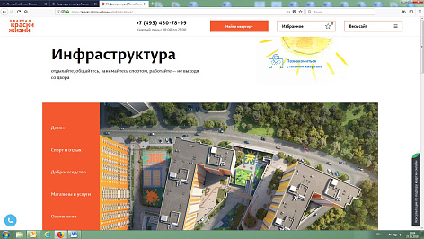 Сайт проекта Квартал «Краски жизни» выделяется, прежде всего, ярким дизайном и жизнерадостным настроением, продуманной структурой и информативностью, наглядностью. Для того, чтобы донести преимущества проекта мы максимально адаптировали юзабилити сайта к потенциальному покупателю, а за счет анимированных героев, живущих на страницах сайта мы вовлекаем клиента в процесс выбора квартир и через эмоциональную составляющую доносим до него основной посыл компании - мы продаем не просто квадратные метры, а образ жизни и позитивный взгляд на жизнь.