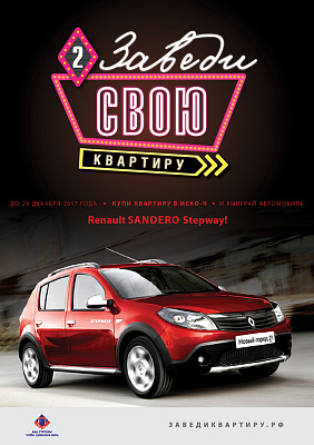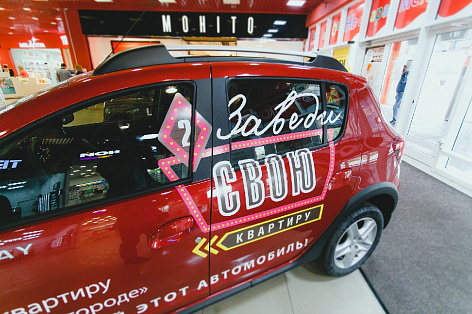 Розыгрыш автомобиля не оказывает значимого влияния на продажи квартир. Скорее это промо-мероприятие: привлечение внимания к району и застройщику, бонус для покупателей. Яркий, небанальный слоган - неотъемлемая часть кампании.
