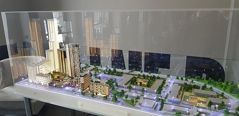Второй этаж начинается с большого макета комплекса с подсветкой и интерактивным управлением.