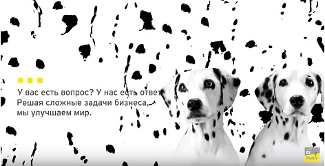 Идея выбора визуала основывается на эффекте оптической иллюзии – окрас породы собак и фон рекламы. Таким образом рекламный текст и фото работают вместе и дополняют друг друга.