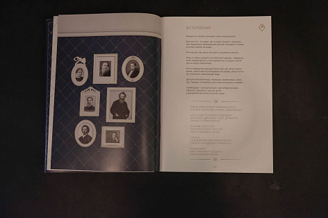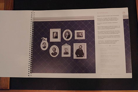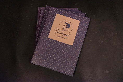 Буклет разрабатывался после утверждения концепции «Грибоедов. Культурный дом» и брендбука. Особое внимание уделялось текстам – описательность, литературность изложения, апелляция как к рациональным, так и к эмоциональным преимуществам проекта. Для большей стилизации был выбран формат книги 165*235 мм.