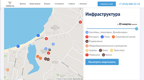 Группа компаний MARINE HILL — профессиональный девелопер в Крыму. В портфеле проектов компании более 300 тыс. кв. м жилой и курортной недвижимости в живописных уголках Ялты, Мисхора, Ливадии, Алушты и Черноморского. За годы работы специалистами компании было создано более 1 000 проектов много- и малоэтажных жилых комплексов, многие из которых стали украшением Крыма. Группа компаний MARINE HILL оказывает весь комплекс услуг в сфере строительства недвижимости — от разработки проектной документации до комплексного обслуживания квартир. Офисы компании расположены в Москве и Ялте.