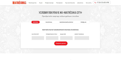 На сегодняшний день промо-сайт жилого комплекса «MatrЁshka city» является самым лидогенерирующим интернет ресурсом среди всех объектов компании УралДомСтрой.