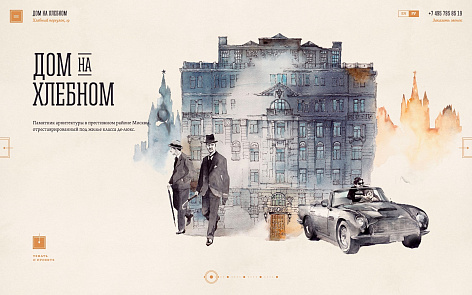 Уникальные акварельные иллюстрации, экскурс в богатую историю дома, супер-современное техническое решение сайта призваны создать элегантное, изысканное впечатление. Здание богато своим содержанием, дизайном и расположением и не требует использования “дорогих” клише в коммуникации. Наоборот, мы видели своей задачей донести их самым изящным образом, с большой долей “understatement”. Покупая квартиру в Доме на Хлебном вы соприкасаетесь с историей города, и этот эфемерной образ должен волновать и вдохновлять.