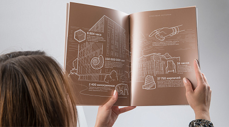 Специально разработанный для брошюры нетекстовый контент: фото и эмоциональные визуализации — максимально наглядно иллюстрируют жизнь будущих жителей дома.