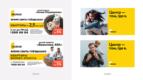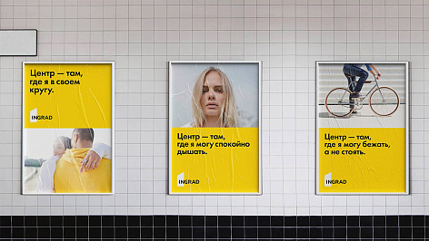 При разработке дизайна команда SH «вычистила» визуальные коммуникации и оставила два ярких знака - желтый цвет INGRAD и единый слоган, таким образом систематизировав все коммуникации для формирования сильного, харизматичного, узнаваемого бренда в городской и digital средах.