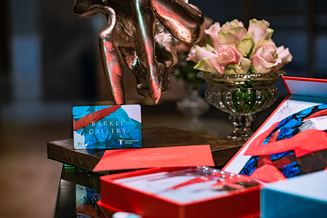 Роскошь, стиль, изящество, красота неоклассики в сочетании с яркими деталями, артистизм, эмоциональность, статус как отражение айдентики бренда – все это нашло воплощение в презентационной продукции бренда. Основной акцент в презентационной и сувенирной продукции сделан на образ «хранителя» коллекционного здания Barkli Gallery – своего рода «экслибрис». Именно он – ключевый элемент брендинга. Попадая на любой носитель, персонаж делает его безошибочно узнаваемым.