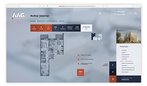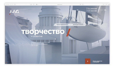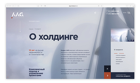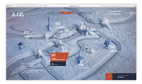 Корпоративный сайт Холдинга AAG – яркий пример того, как шаг за шагом сайт формирует индивидуальность и цельность компании в глазах посетителей. Вся визуальная часть для сайта была создана в 3D. Особенность сайта – полноценный выбор квартир в «собственных проектах» Холдинга.
