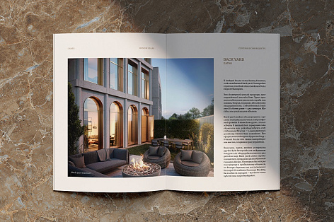 Буклет проекта является не просто раздаточным материалом, который будущий резидент получает после встречи и сразу кладет «в дальний ящик». Буклет – связующее звено между резидентом и его будущей размеренной жизнью в одной из частных вилл Caméo.