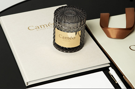 При совершении сделки каждому клиенту преподносится ароматическая свеча с логотипом проекта и гравировкой с именем резидента. Свеча представлена в прозрачном стеклянном стакане, а табличка с гравировкой выполнена из латуни, что является отсылкой к элементам архитектуры Caméo. Для еще большей персонализации была продумана целая гамма женских и мужских ароматов, чтобы каждый клиент получил свечу, отвечающую его индивидуальности.