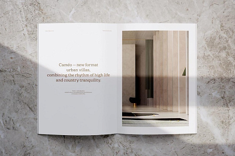 Брендинг, созданный для проекта, в первую очередь передает уникальность формата Moscow Villas. Caméo – это не просто «виллы» или «жилой комплекс класса deluxe». Caméo – это особое место по соседству с Тверской, в котором все ваши пять чувств будут уверять вас, что вы находитесь за городом.