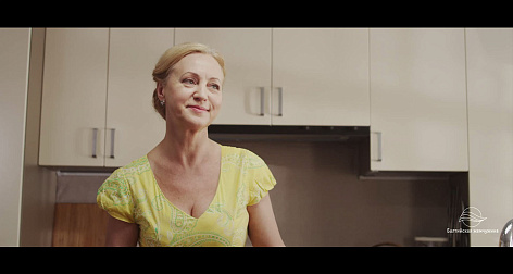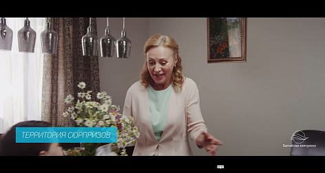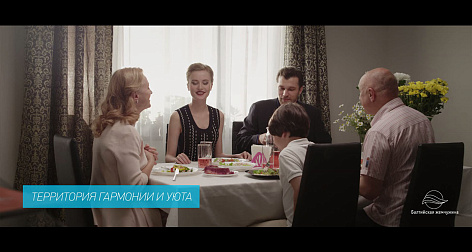 Бабушка готовит праздничный ужин на светлой кухне. Счастливая мама идет домой после шоппига в ТРЦ. Папа едет на машине с работы. Сын несет домой рыбку, пойманную в одном из каналов микрорайона. Все герои встречаются за общим семейным столом в просторной квартире, из широких окон которой открываются роскошные виды на свободные проспекты и стройный архитектурный ансамбль, каналы, парки и бескрайний Финский залив.