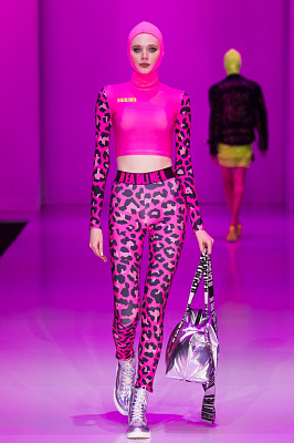 Дизайнер использует в коллекции смелые анималистичные принты – брюки, костюмы, бомберы, свитшоты выполнены из тканей леопардовой и гепардовой расцветок. Кроме того, в коллекции много актуального в этом сезоне неона розового и желтого оттенков, что, несомненно, делает каждый образ ярким, заметным и трендовым.