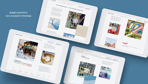 Дизайн-концепция разработана в стиле минимализма, чтобы максимально подчеркнуть впечатляющий фото и видеоконтент сайта. Белоснежные страницы создают контраст с яркими фотографиями набережной и благоустройства, выгодно обрамляют солнечные визуализации архитектуры.