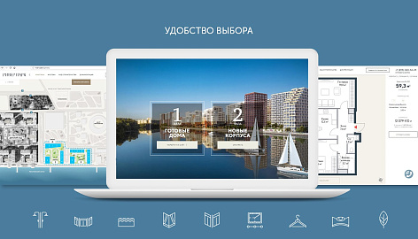 Именно поэтому тема воды стала главной в разработке анимационной концепции сайта. Использование современной анимации позволило реализовать эффект ряби по воде и буквально оживить визуализации набережной. Плавная анимация в меню и графических элементах по мотивам волны поддерживает выбранное направление.