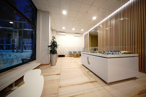 При посещении офиса продаж будущий житель миниполиса Серебрица впервые знакомится с эстетикой своего нового дома.