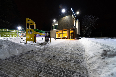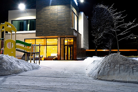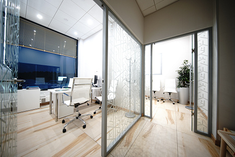 матовыми стикерами с элементами фирменного стиля миниполиса