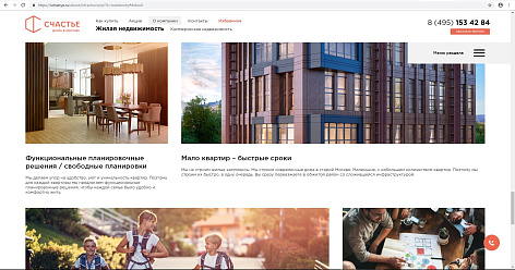 Раньше вся информация о клубных домах размещалась на сайте застройщика «Лидер-Инвест», но вывод нового бренда на рынок логично следовало сопроводить запуском отдельного сайта. Сайт, посвященный бренду «Счастье», был запущен 1 октября 2018 года. Он объединил в себе 25 проектов «Лидер-Инвест» на разной стадии реализации.