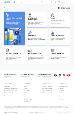 У сайта «БЕСТ-Новострой» действительно появилось реальное преимущество перед ресурсами конкурентов: это простой и интуитивно понятный ресурс, где невозможно «заблудиться» или запутаться. Контент сопровождается множеством визуализаций и фото. Важная информация всегда на виду.