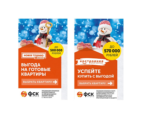Объединяющим элементом коммуникации всех объектов ФСК стала оранжевая плашка – домик, в котором размещается рекламное сообщение, и яркие крупные элементы сезонной фокусной коммуникации для всех объектов.