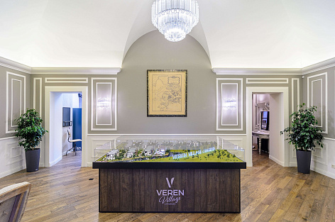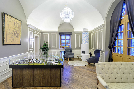 Место офиса продаж было выбрано не случайно. Его расположение, внутренний интерьер должны соответствовать уровню проекта и дарить клиентам положительные эмоции в процессе выбора квартиры. Также нам было важно учесть концепцию благородного окружения. Мы не могли остаться равнодушными к такой величественной красоте и вдохновлялись окружающими нас дизайнами.