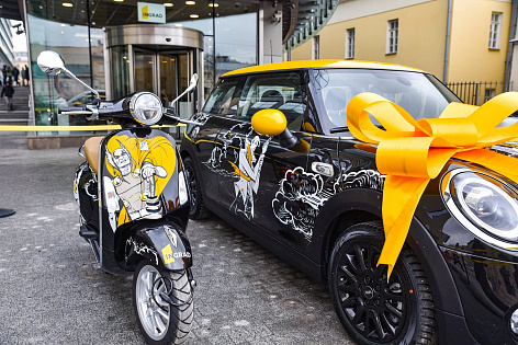 Призы: главным призом стал брендированный автомобиль Мини Купер, на котором одна из лучших в Москве тюнинг-студий сделала аэрографию с изображением супергероев ГК «Инград». ИнградМобиль, как его прозвали сотрудники компании, был разыгран в прямом эфире – трансляция велась на канале в YouTube. Также своих владельцев обрели культовые мопеды Веспа, крутые велосипеды Schulz, последние модели Iphone и стильные дизайнерские шапки CP Company.