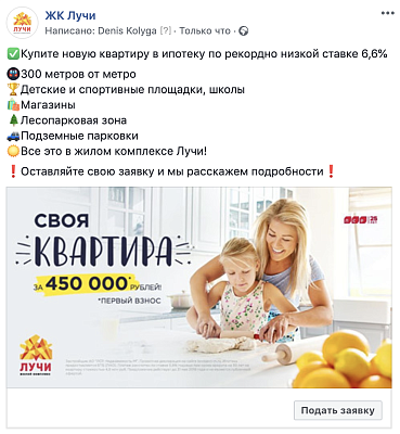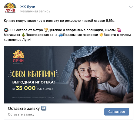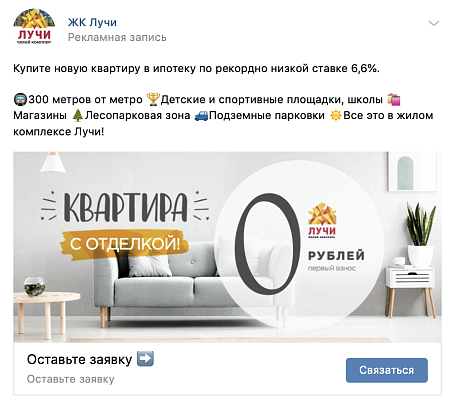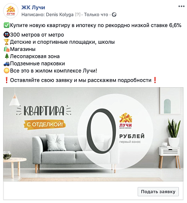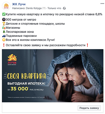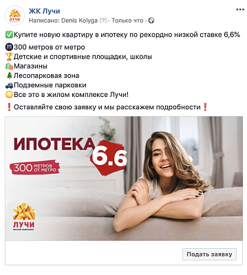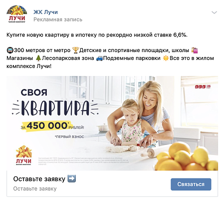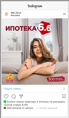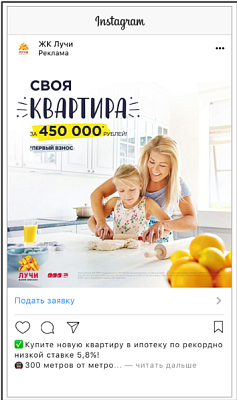 Задача Adventum заключалась в выполнении плана по привлечению лидов в социальных сетях. Для рекламной кампании в марте было решено создать новые креативы, с помощью которых можно было бы наглядно продемонстрировать аудитории не сам жилой комплекс, а передать те эмоции, которые она получит от приобретения собственной квартиры в ЖК «Лучи».
