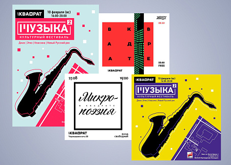 Варианты слогана: «Музыка в квадрате», «Еда в квадрате», «Искусство в квадрате», «Поэзия в квадрате», «Здесь всё в квадрате!» и пр.