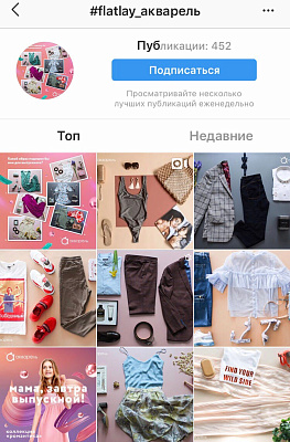 В инстаграме также наблюдаем активную обратную связь в видео большого количества лайков, комментариев и активного сохранения постов с флетлеями. По хештегу #flatlay_акварель — 452 публикации.