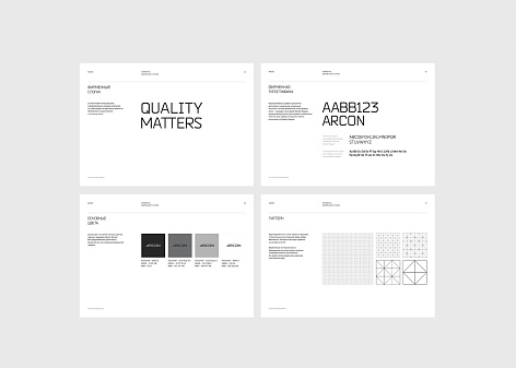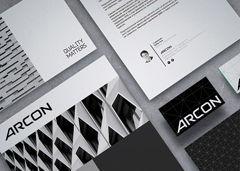 В слове Arcon содержится намек на деятельность компании (art of construction, architectural connection), а слоган «Quality matters» призван еще раз подчеркнуть уровень качества и европейский подход.