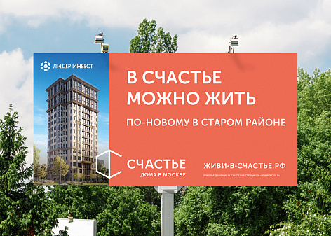 Объекты, вошедшие в «зонтик», получили новые имена с уточненным адресом — конкретные улицы заменены на более известные названия так называемых вернакулярных районов — не строгого, а более обиходного деления Москвы (так, как обычно говорят люди: я живу на Соколе, на Дмитровке, в Мневниках и т.д.): прежний «Дом на Рогожском валу» стал «Счастьем на Таганке». Эту близость человека с городом отражает и слоган бренда, который, в зависимости от ударения, говорит и о домах, и о возможности почувствовать себя дома. Яркая, простая и гибкая визуальная система обеспечила узнаваемость и синергию маркетинговых коммуникаций во всех каналах. У «Лидер-Инвеста» в Москве было много домов. После ребрендинга — стало много «Счастья».