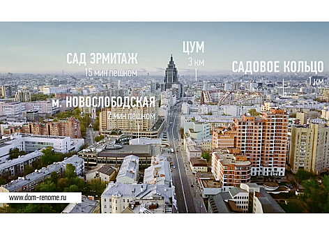 Дом Реномэ расположен в центре столицы – в Тверском районе. Благодаря такой локации дом РЕНОМЭ помогает сохранять ценный ресурс – время. Можно быстро добраться от дома до работы, магазинов, культурных и исторических объектов. В двух минутах ходьбы находится станция метро «Менделеевская», в 15 минутах ходьбы – Сад Эрмитаж и Екатерининский парк.