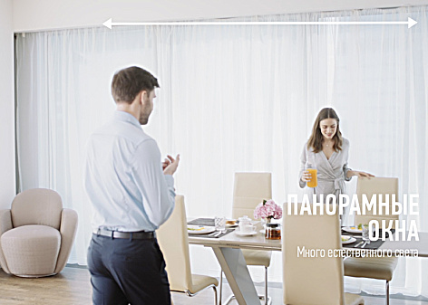 Знакомство клиента с проектом Реномэ начинается в офисе продаж с просмотра атмосферного видеоролика. Каждое преимущество раскрывается через эмоциональную визуализацию, дополняется инфографикой и поясняется закадровым комментарием. Это позволяет в буквальном смысле прожить 3 минуты в доме Реномэ.