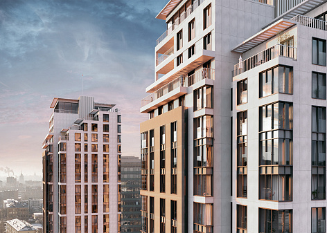 Клубный дом состоит из двух практически идентичных 20-этажных башен со строгими и элегантными фасадами. Именно такое архитектурное решение, а также локация проекта, натолкнули SmartHeart на мысль рассмотреть знаменитые районы Нью-Йорка в качестве ключевой идеи бренда, ведь многие москвичи сравнивают Белую площадь с Манхэттеном.
