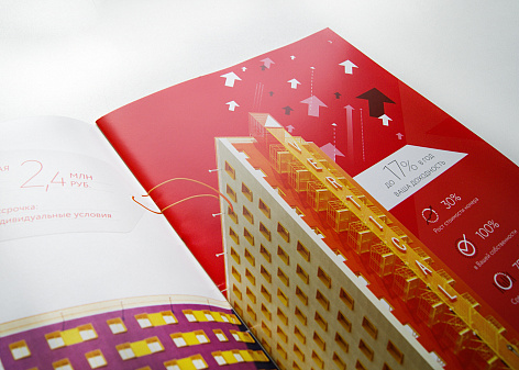 Представители фокус-групп признавались, что буклет листается с интересом, его хочется разглядывать. Глаз не устает путешествовать по ступеням страниц, и в целом изделие производит впечатление некоего трамплина, что полностью отвечает задачам нашего клиента.